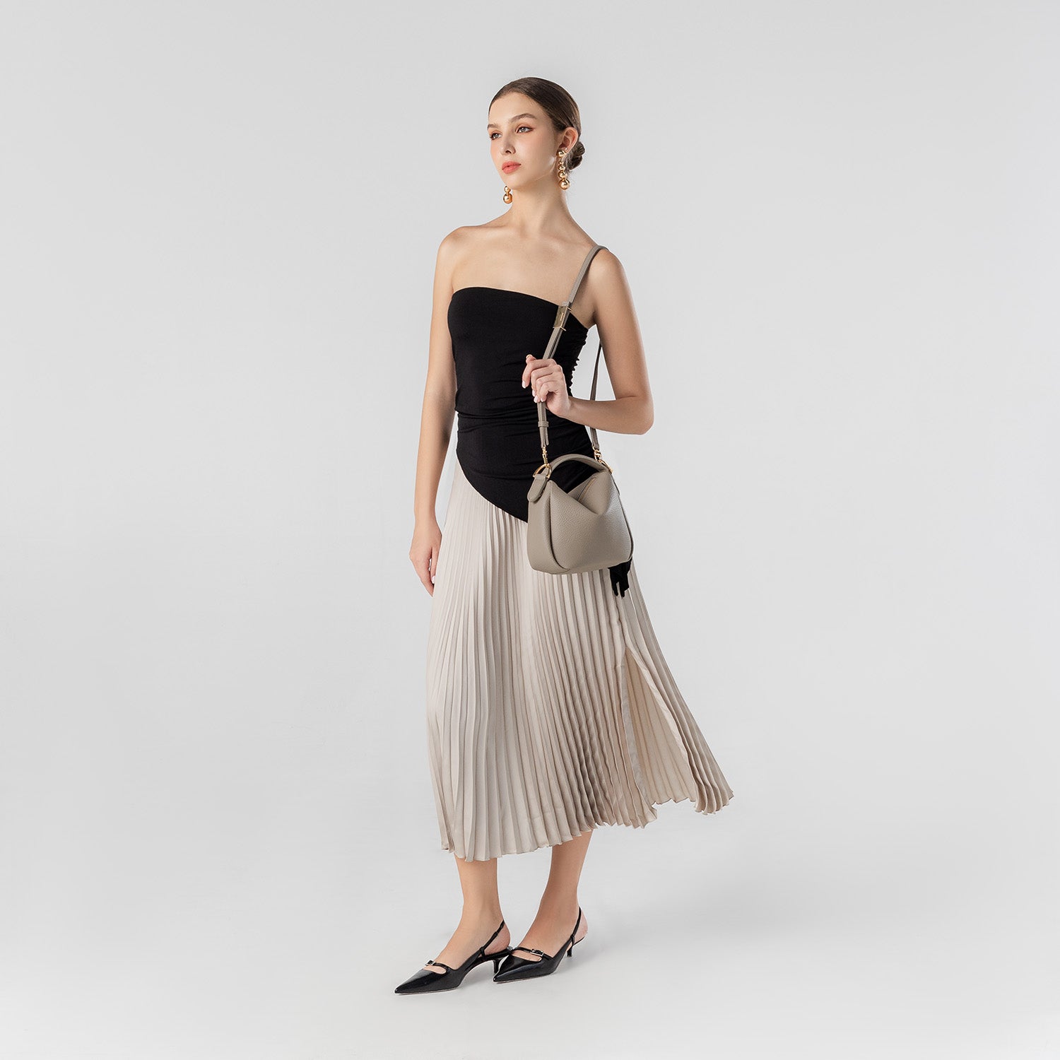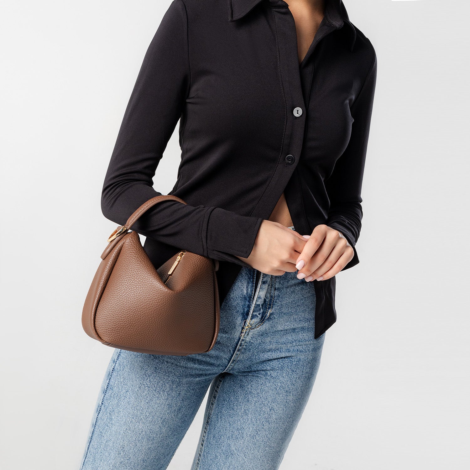 Carry it gracefully on your arm, or go hands-free with the adjustable crossbody strap when you’re on the move.