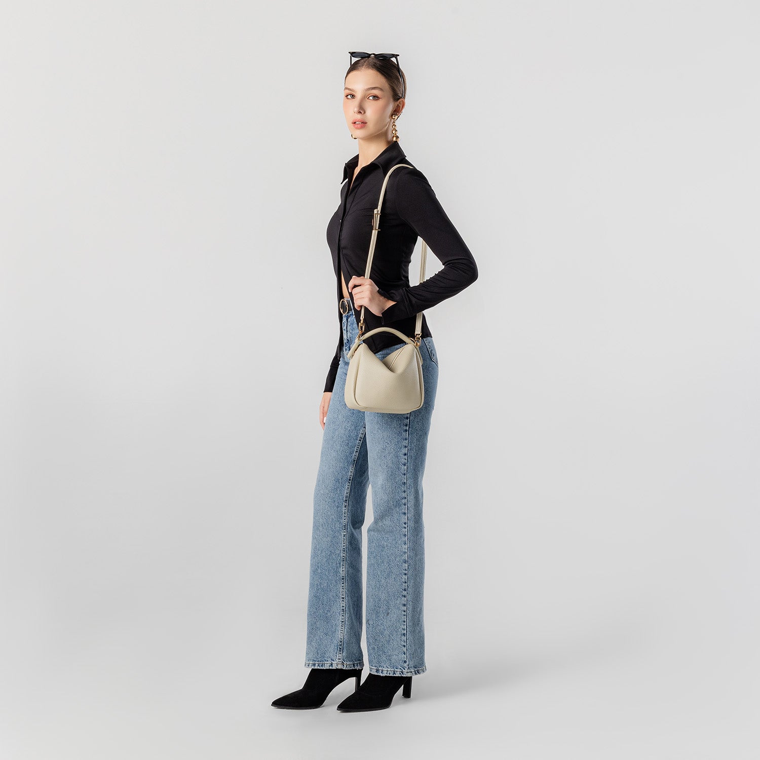 - Adjustable and detachable crossbody strap